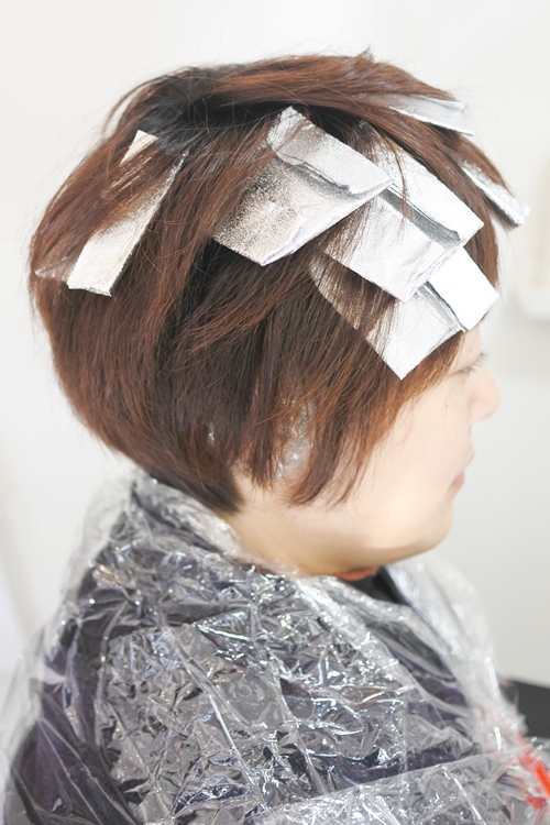 ハイライトはブリーチをクリア剤でパワーを落として入れました。